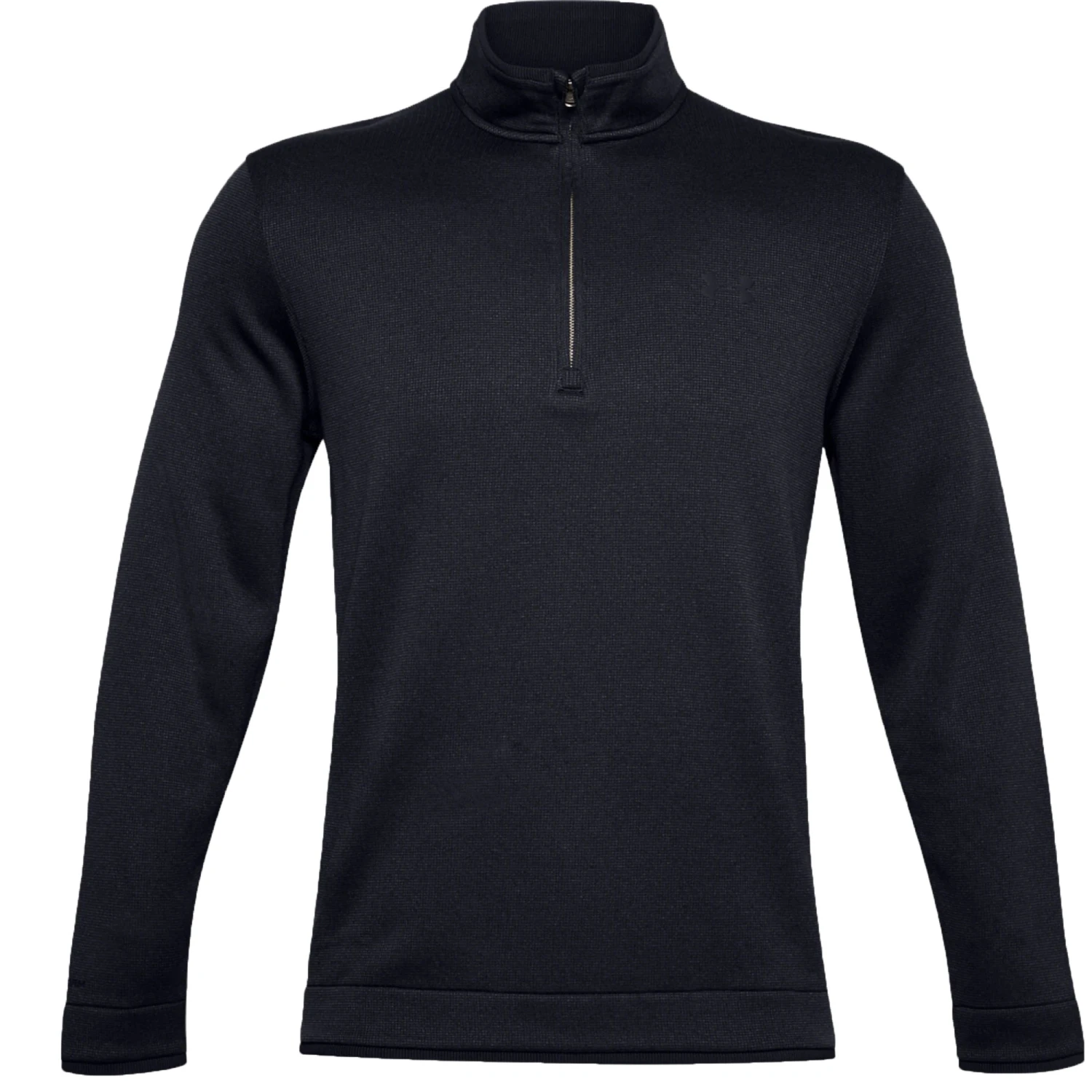 Under Armour&Storm&Half&Zip Golf Sweater – Black A simple yet great Sweater by Under Armour. It’s a way to extend your season without having to wear restrictive, bulky gear. Suitable for wear both on and off the course.& Features Breathable Loose Storm technology repels water Updated SweaterFleece fabric has a soft, brushed interior Ribbed details at bottom hem, cuffs, and neck& 1/2 Zip 100% Polyester